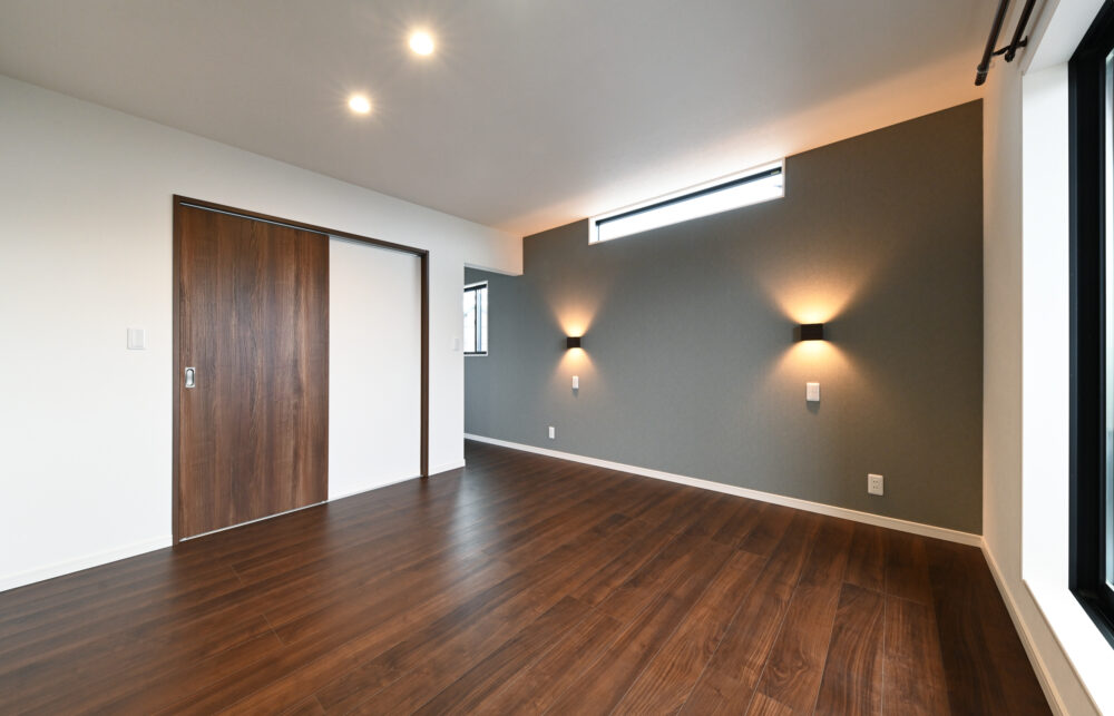 グレーをキーカラーとして統一しました。スイッチ類はリモコンニッチに収めて、すっきりとした印象に。