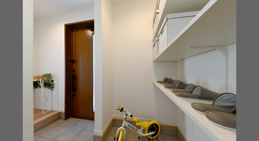 土間収納もたっぷり!お客様用とご家族用で部屋への入り口を分ける2WAYにすれば急な来客でも玄関回りを片付ける手間なし!扉も付けられるので玄関回りをすっきりと見せられます。