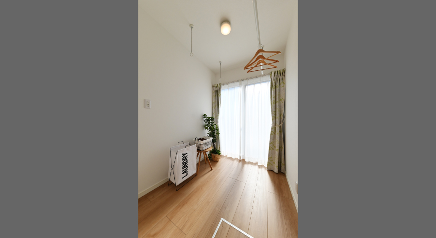 室内に洗濯機を置くスペースを設けたので、洗濯機から直接服が干せます。水にぬれた重い洗濯物を運ぶ手間もないのでとても便利です。